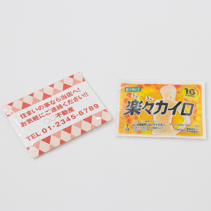 イベントや店舗での配布に最適な名入れカイロ レギュラー 貼らないタイプです。