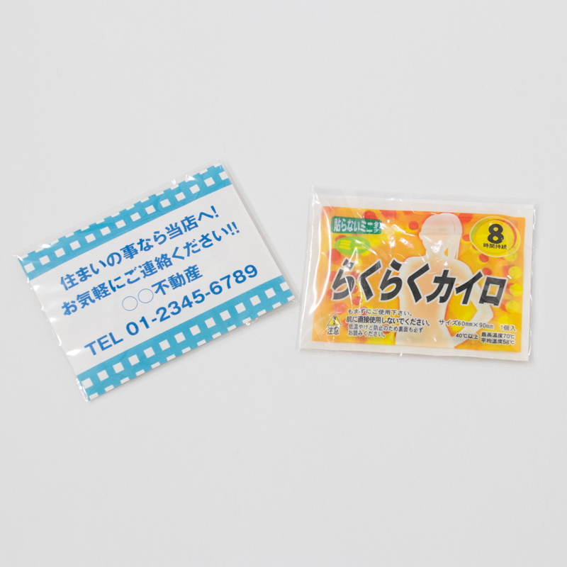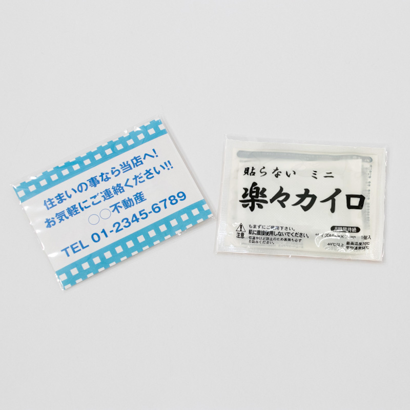 イベントや店舗での配布に最適な名入れカイロ ミニ 貼らないタイプです。