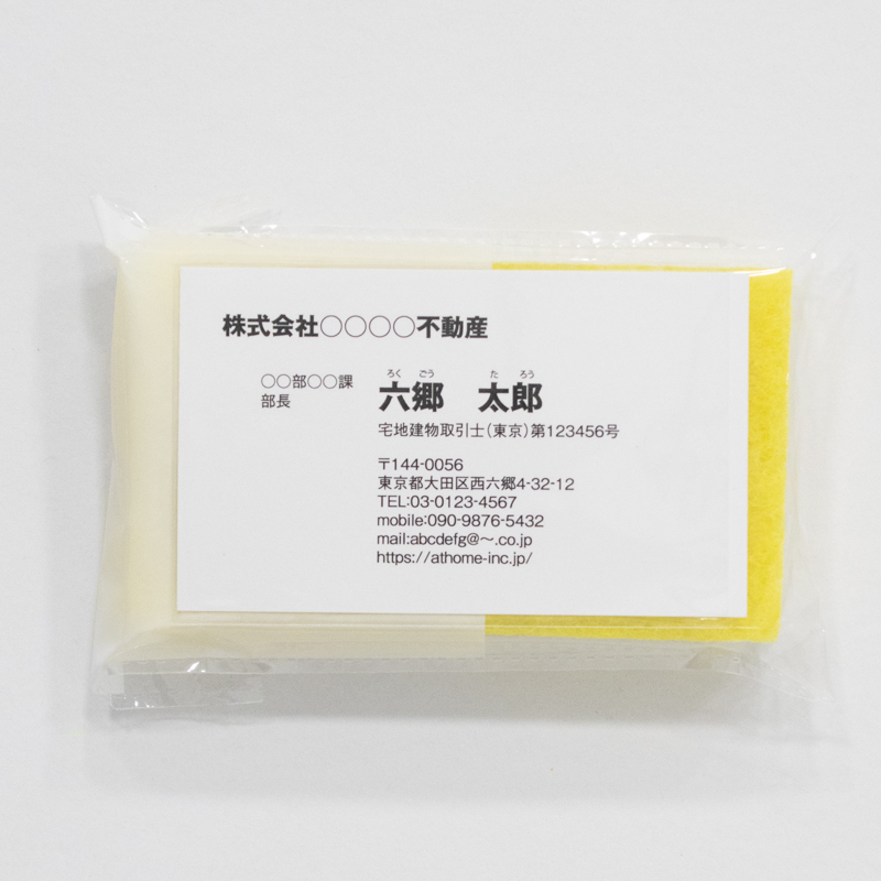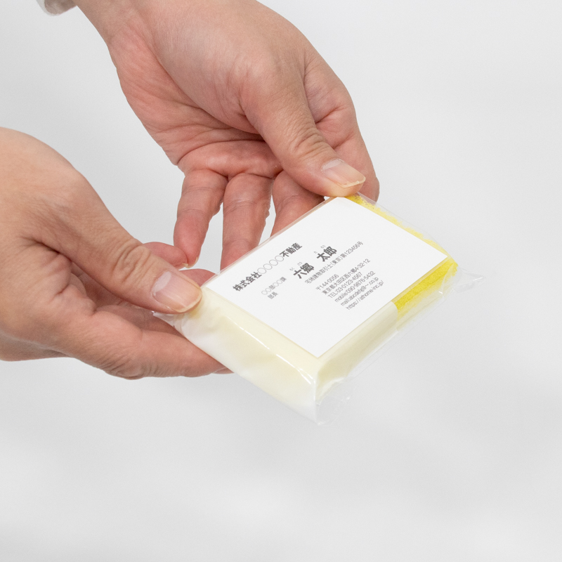 名刺と一緒に渡せるから、記憶に残る。必要な分だけ手軽に購入いただける名刺ポケット付きキッチンスポンジです。 イベントやご挨拶で、ただ渡すだけでなく「気配り」を伝えられ、貴店のイメージアップにつながります。 実用性も高く、受け取った方に喜ばれるノベルティです。