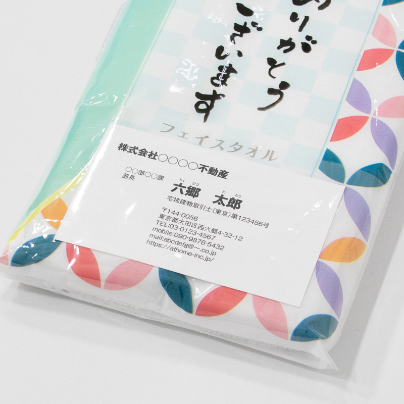 名刺と一緒に渡せるから、記憶に残る。必要な分だけ手軽に購入いただける名刺ポケット付きフェイスタオルです。
