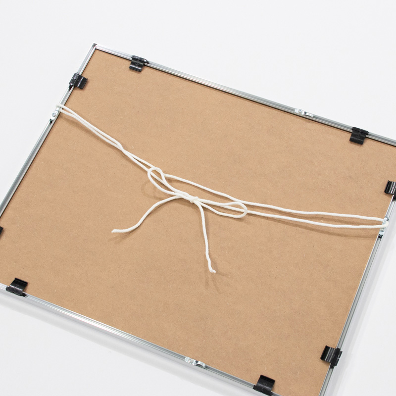 フレームと吊り下げ用の紐がセットになっているため、商品が届いたら、そのまま壁に掛けるだけですぐに掲出できます。
